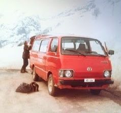 Von 1981-'83 hat Frau Charlotte Rutgers die Verwaltung/Vermietung in Fischbiel gemacht. Der Fischbiel-Terminal auf Lauchernalp mit der Raupentaxi gab es noch nicht. Dafür gab es dieser kleiner, roter Allrad Buss. Sie schreibt "Es waren damals andere Zeiten, ohne Handy, Internet, tagelange Stromunterbruch und keine Telefonverbindung, Schnee hatten wir mindestens."