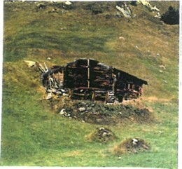 Josef Imseng half mir zehn Zwölftel des Treimadhuisis zu erwerben und damit zu retten. Das kleine Häuschen versank fast im Bauschutt der fünf umliegenden, neuen Häusern. Die Schindeln waren vom Firstbalken abgeglitten und dieser begann zu faulen. Ebenso erging es den bergwärtigen Balken. Josef Imseng erzählte mir vielüber die Geschichte des kleinen Hirtenhauses. Es war 1767 von acht FamiIien erbaut worden, deren Namen Josef Imseng noch kannte. Unter ihnen befand sich Peter Tannast. Angela Jaggifand ihn in den Kirchbüchern von Kippelals Peter Tan nast, der Zimmermann. Das Haus war also unter kundiger Leitung gebaut worden. Selbst im schlimmsten Sturm war denn auch darin kein Lufthauch zu spüren. Das Haus wurde entgegen den meisten Hirtstuben dieser Zeit ohne Stallgebaut, lag es doch neben einer grossen Scheune mit Stall, welche später zum Fluemadhuisitransportiert und durch eine kleine Scheune ersetzt wurde. Die Scheunen auf Fischbielwaren alle über Ställen aufgebaut und heissen in den Büchern "Scheune und Stall" Der Kürze wegen werden sie im folgenden einfach Scheune genannt. Decken und Firstbalken wurden vom Tal von starken Männern hochgetragen. Einige Balken stammen von Hostätten der Umgebung.