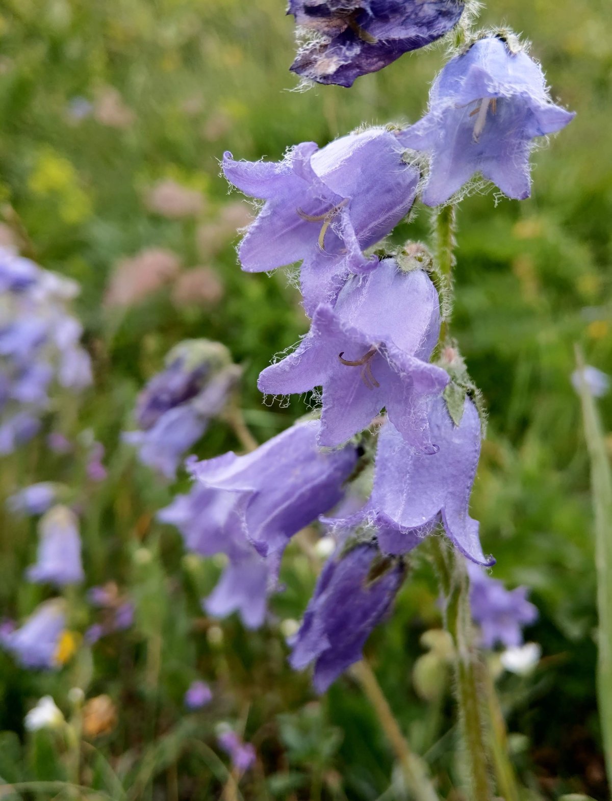 Eine weitere Rarität des Lötschentals: Steigen wir nach der Treimad der Strasse zur Weritzalp entlang bis zum Hydrant und über die Matten zum Ferrich, entdecken wir während des ganzen Sommers krautartige, grüne Pflanzen, deren Sporen in einer aufrechten Rispe erst im Spätsommer reifen. Es ist die Mondraute (Botrychium lunaria), eine Frühform der Farne. Im Hochsommer entdeckt der Wanderer am Südhang vom Biel zwischen Lawinenverbauungen einige Kolonien des Türkenbunds (LiIium martagonum). Zusammen mit der Riesenflockenblume (Centaurea rhapontica) kommt er auch in gefährlicher Lage auf den Felsen unterhalb des obersten Wanderwegs nach der Weritzalp vor. Immer wieder besuche ich die tiefblauen Stauden des Eisenhuts, die zusammen mit den fast schwarzen Erlen und Weiden am Rand des Milibachs auf der Höhe der Fischbielsuon wachsen. An einigen Stellen gesellt sich ihnen die tiefrote Kartäusernelke (Dianthus carthusia-norum) bei. Im Gegensatz zu den fröhlichen BIumenwiesen stimmt diese GeselIschaft ernst und nachdenklich.