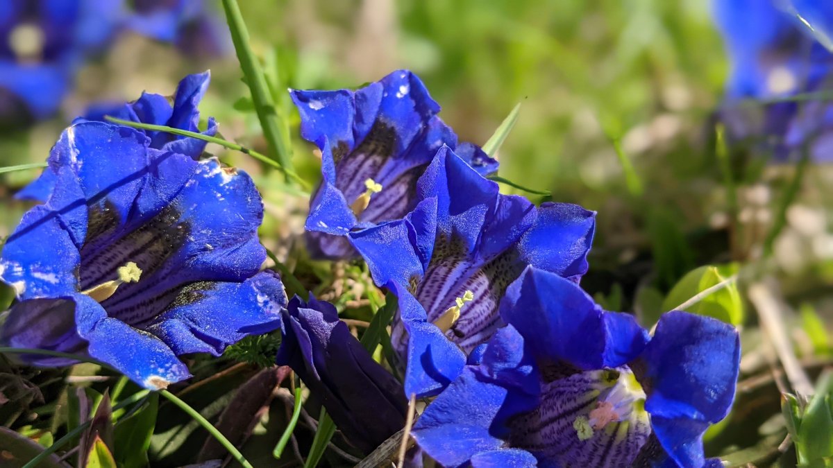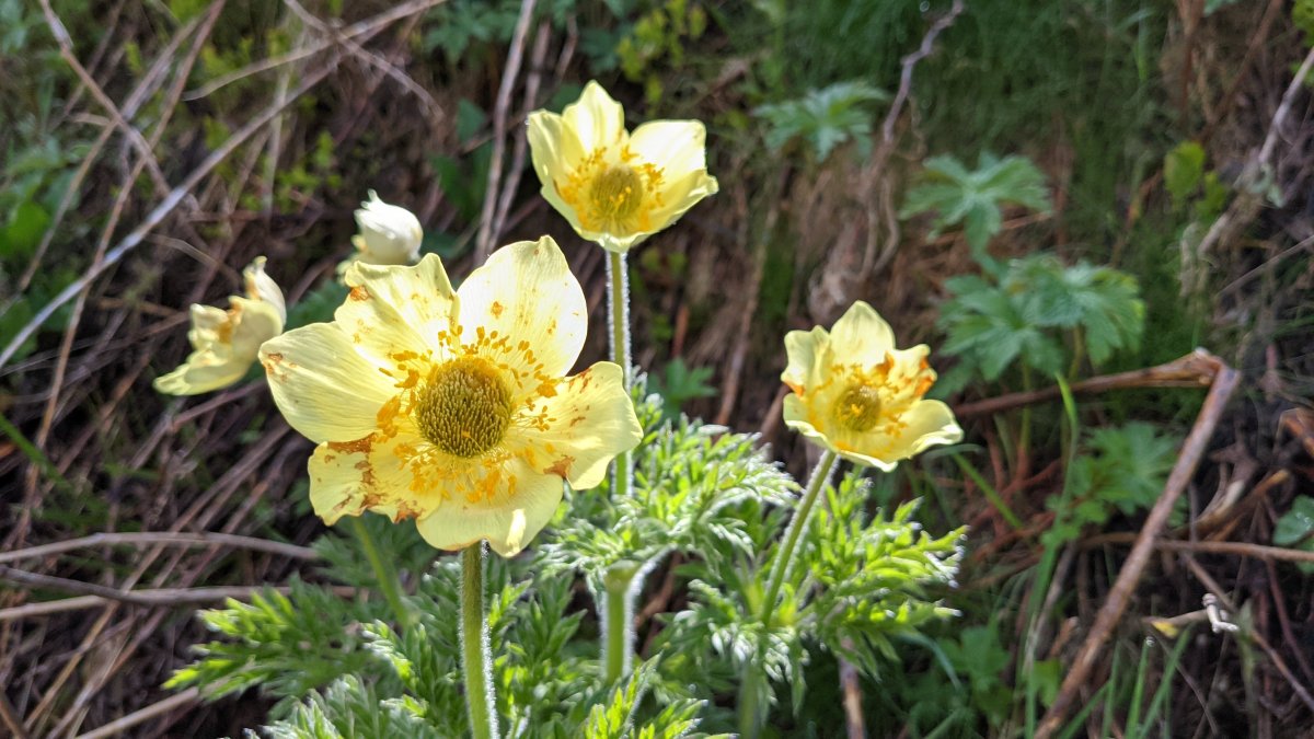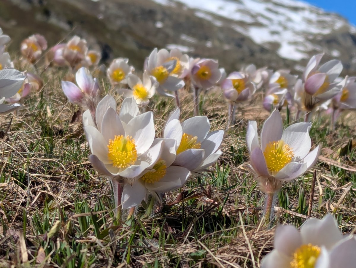 Der Frühling wird von der wunderschönen Pelzanemone (Pulsatilla vernalis) eingeläutet, die heute noch an der Biel-Ostflanke, am Seebord und auf der grossen Moräne ob Steinegga blüht. An Pfingsten, wenn in der FIüemad und Treimad Schwefelanemonen (Pulsatila apiifolia) , Enziane und der Lerchensporn dominieren, wachsen der Treimadsuon entlang die kleine Mehlprimel (Primula farinosa) und noch einige verspätete Soldanellen (Soldanella alpina), sowie auf sehr feuchtem, moorigen Boden das geschützte Alpenfettblatt (Pinguicula alpina). Es bezieht seinen Stick stoffbedarf von Insekten, die auf den klebrigen Blättern kleben bleiben.
